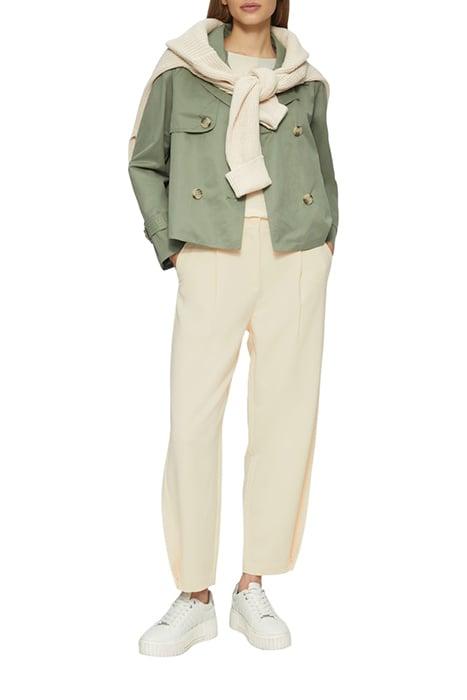 Waistband: With Belt Loops, Waistband Height: High Rise, Leg Length: Cropped, Trouser Style: Relaxed Fit, Material: Polyester Mix, Legs: Tapered Leg, Closure: Zipper, Button, Fabric: Twill, Pocket: Slit Pocket.