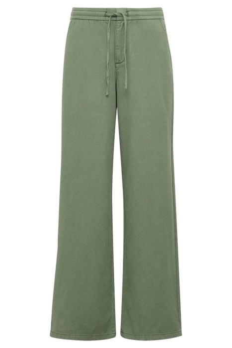Band: Elastische Band, Bandhoogte: High Rise, Beenlengte: Regular, Broekmodel: Relaxed Fit, Details: Koord, Finish: Wassing, Materiaal: Katoenmix, Pijpen: Wide Leg, Sluiting: Haak En Oogje, Ritssluiting, Knoop, Stof: Twill, Zak: Steekzak.