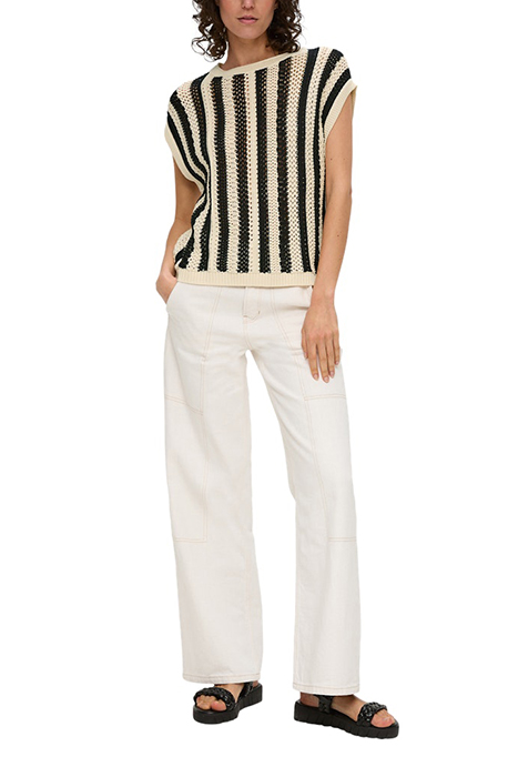 Neck: Round Neck, Material: Cotton, Sleeves: Oversized Shoulders, Sleeveless, Fit: Relaxed Fit, Hem: Ribbed Edge.