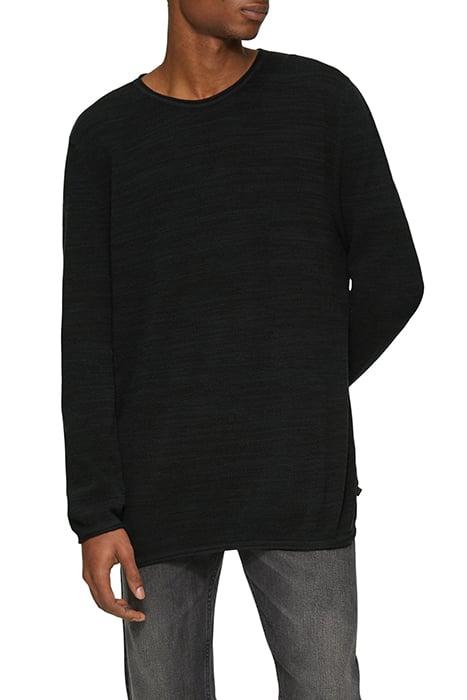 Collar: knitted collar; Fabric: knit; Fit Overall: regular fit; Hem: rolled hem; Material: cotton; Neckline: rolled hem, round neckline, crew neck; Pattern: knit pattern; Quality: fine, textured; Sleeve: rolled hem, long sleeves; Style: casual