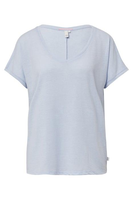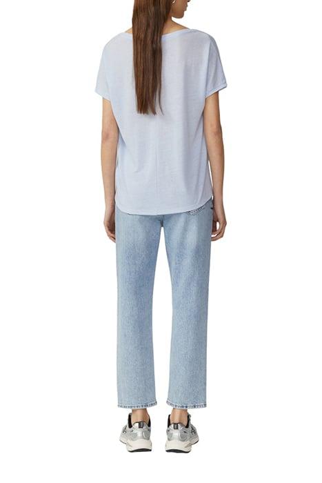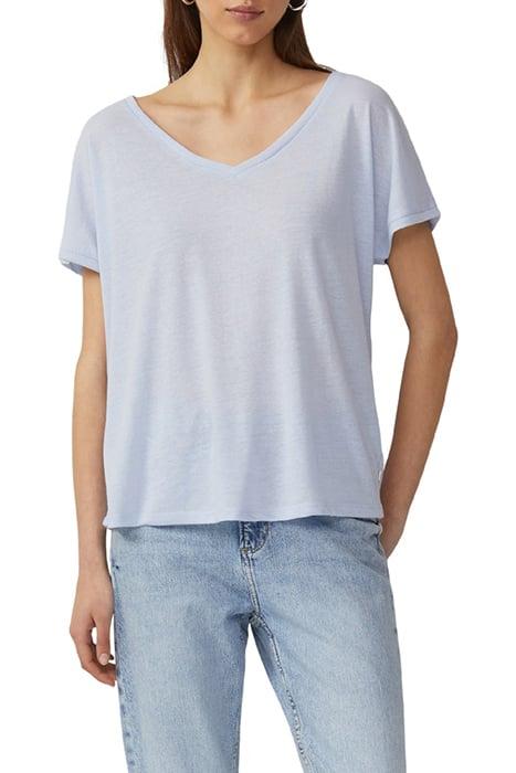 Details: Deelnaad Eigenschap: Zacht Hals: V-Hals Materiaal: Linnenmix Mouwen: Vleermuismouwen, Korte Mouwen Pasvorm: Loose Fit Stof: Jersey Zoom: Afgeronde Zoom