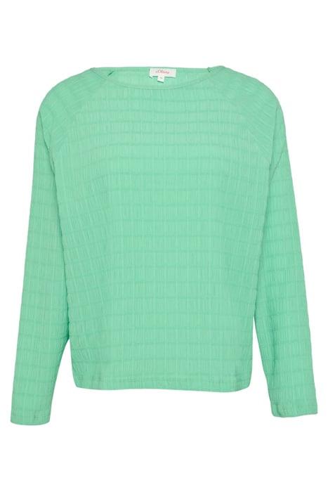 Fabric: jersey; Fit Overall: relaxed fit; Material: polyester blend; Neckline: round neckline; Quality: crinkled, stretchy, textured; Sleeve: long sleeves, raglan sleeves