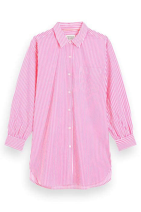 OVERSIZED POPLIN SHIRT IN FLUO PINK /WHITE STRIPE COMBO S