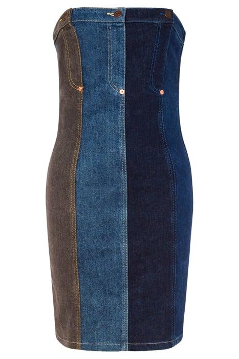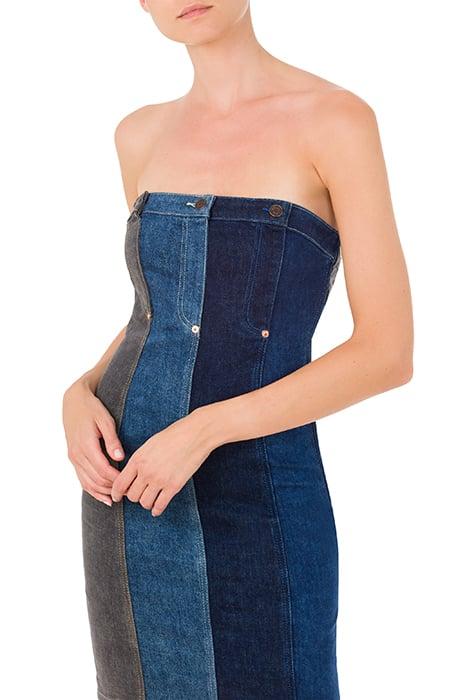 Bustier Minidress Made With Contrasting Denim Patchwork.