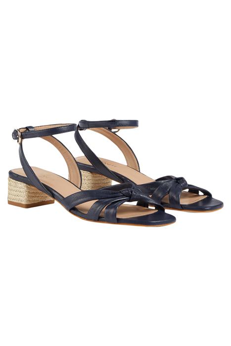A great everyday sandal, our Peyton sandals offer comfort and a little height. Crafted in Spain from super-soft navy blue nappa leather, they're a strappy style that knot at the front, have a buckled ankle strap and an espadrille, 35mm block heel. Wear them with summer dresses and tailored pieces alike.