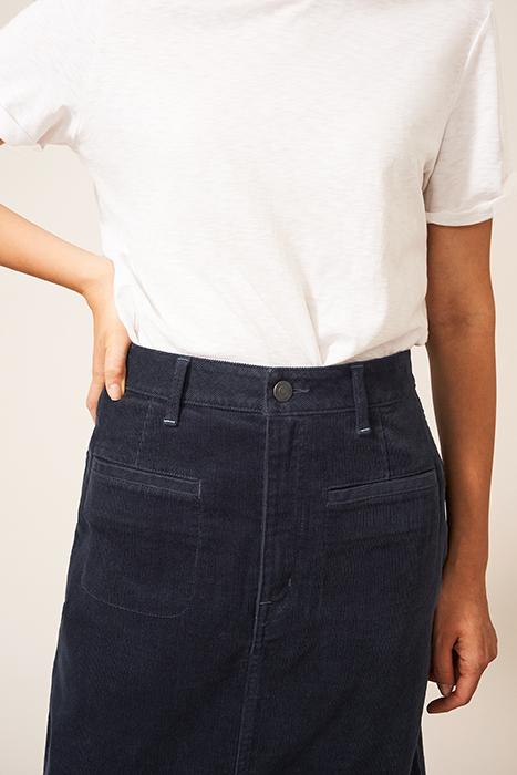 Add a touch of effortless charm to your ensemble with the Poppy Cord Midi Skirt Dk Grey, tailored for a seamless fit and sleek design.