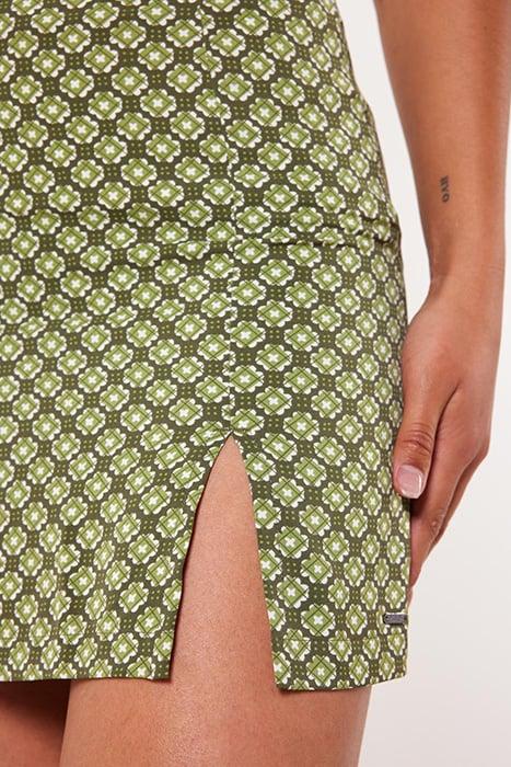 America Today Women'S Skirt. The Raya Is A Woven Skirt With An All-Over Print. The Skirt Also Has A Front Slit.