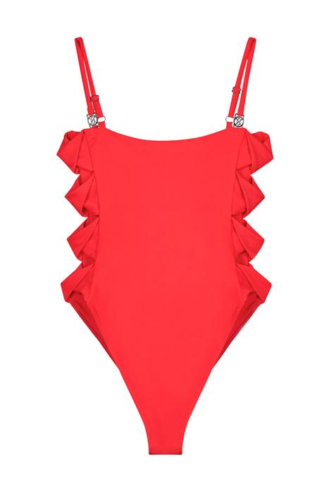 Score instant style points this summer with our swimsuit. In an eye-catching lifeguard red hue with twisted side strap details, it feels more deconstructed high-fashion swimwear and less Baywatch. The shoulder straps are attached and adjusted using 'DP' branded metal buckles, whilst a silicon edging runs along the chest seam to provide a more secure fit. Made from a quick-drying synthetic for added comfort.