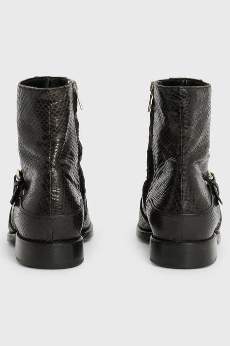 The Regent Buckle Boot Combines True Elegance And Elevated Attitude. Handcrafted From Python Stamped And Printed Sheep Leather, Its Distinctive Texture Is Enhanced By Signature Gunmetal Hardware.The Oxblood Hand-Stained Leather Sole Complements Its Rich Aesthetic, While The Goodyear Welt Construction Ensures Durability And Craftsmanship. This Boot Seamlessly Merges Old-World Techniques With Contemporary Elegance For The Modern Connoisseur.