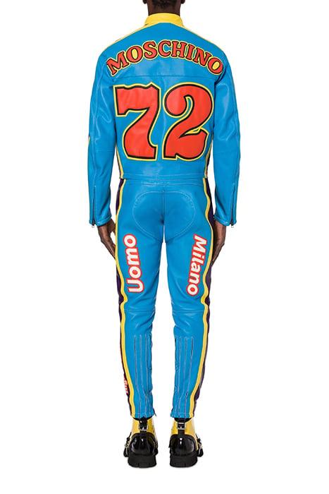 RETRO MOSCHINO LOGO LEATHER BIKER BLUE
