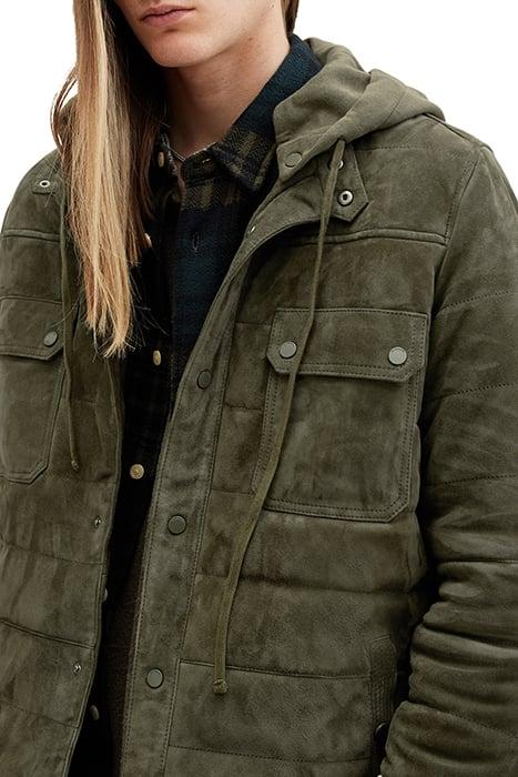 Shell: 100% Goat Suede Lining: 100% Polyester (Recycled) Filling: 100% Polyester (Recycled) Hood: 100% Cotton