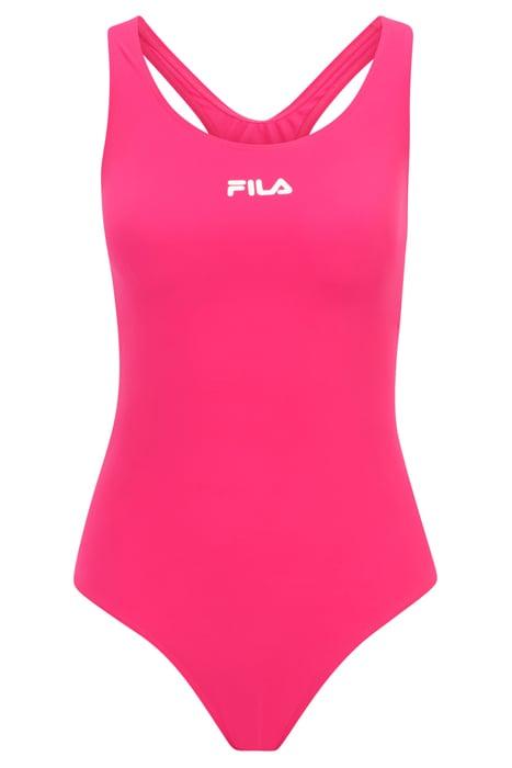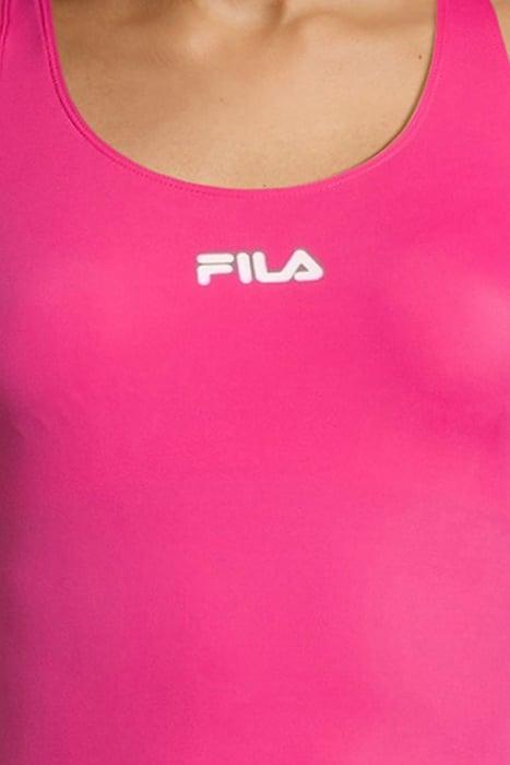 Sporty Swimsuit With A Racer Back For Women. In A Single Jersey Lycra Quality And Branded With A Large Fila Linear Logo Across Chest.