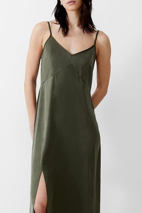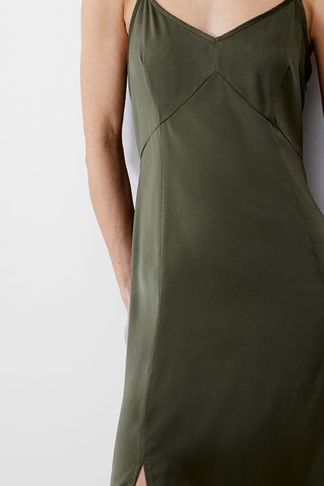 SATIN SLIP DRESS LONG KHAKI
