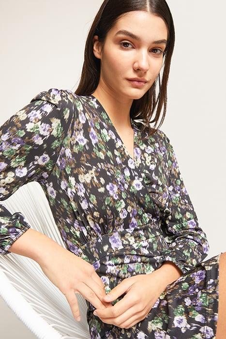 SHORT FLORAL PATTERNED JERSEY DRESS BLACK
