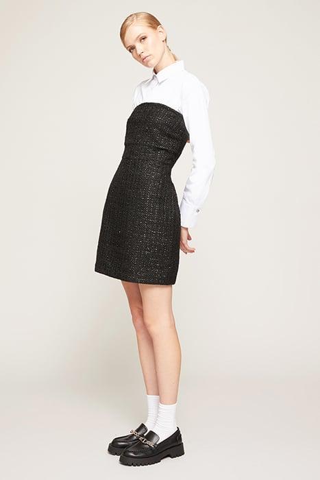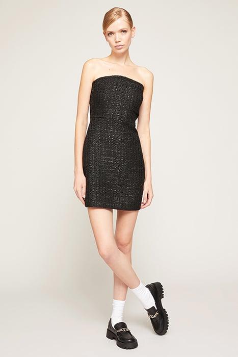 SHORT LUREX TWEED BUSTIER DRESS BLACK