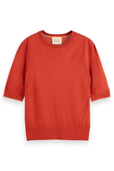 SHORT SLEEVED CREW NECK PULLOVER RUSTIC CORAL