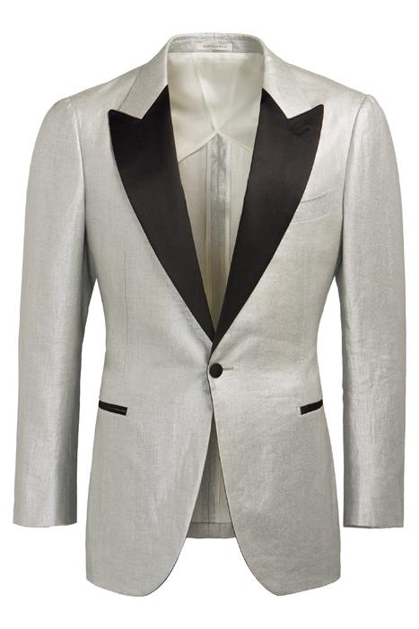 A Certified Standout Among Our Eveningwear Collection, This Striking Silver Tone Jort Tuxedo Jacket Is Made To Get Noticed. Tailored To A Slim Fit From Pure, Breathable Linen, It Features A Strong Satin-Covered Peak Lapel, Pleated Shoulders And Butterfly Lining.