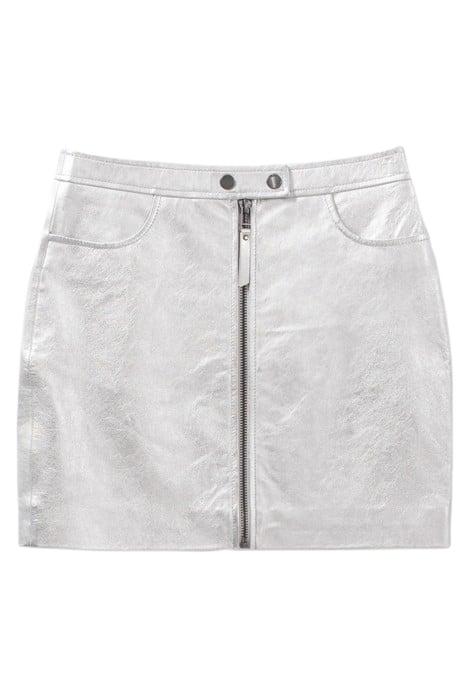SILVER LEATHER ZIPPED SHORT SKIRT