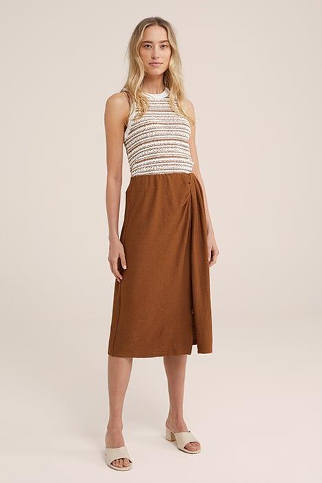The Skirt Medium Length Brown brings a touch of sophistication to your daily wear. In a refined a versatile shade hue, it pairs effortlessly with everything from denim to tailored pieces. Style it your way and make it a signature staple in your wardrobe.