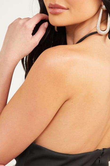 Make an unforgettable impression with the Daniela Scuba Jet Black Mini Dress, a bold yet refined wardrobe essential.
