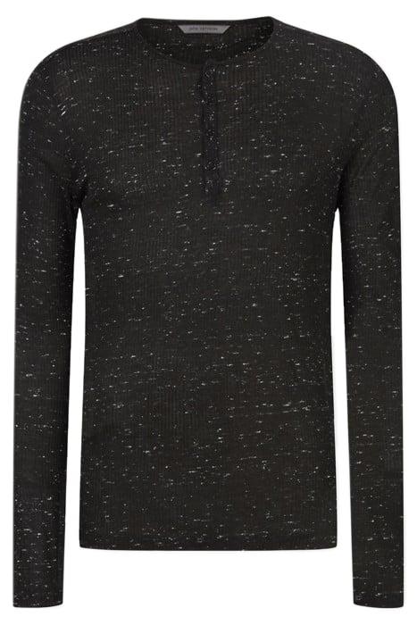 SLIM FIT LS MELANGE NEP RIB HENLEY BLACK