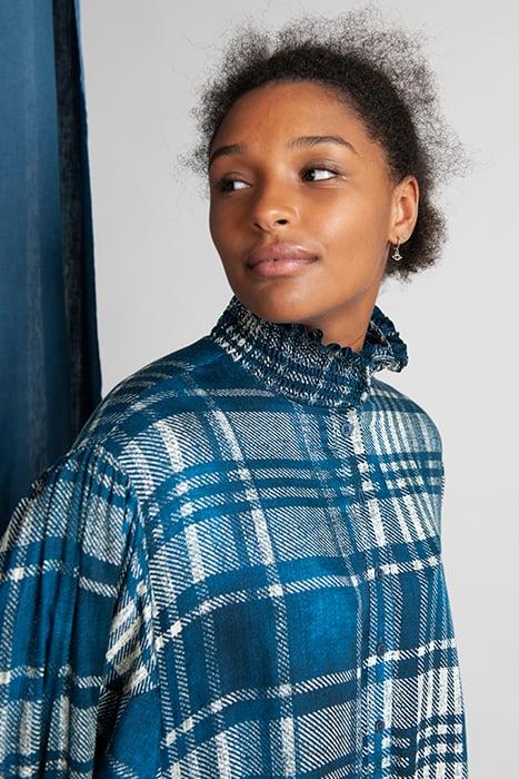 SMOCK COLLAR SHORT LS DRESS MULTI