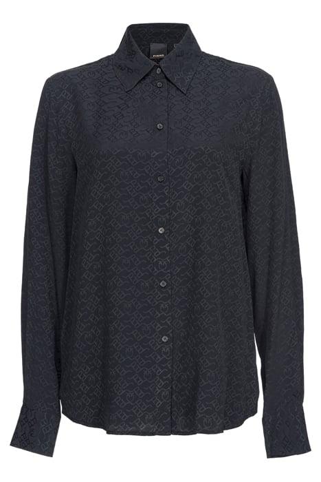 Shirt In Jacquard-Woven Silk Crepe De Chine, With Logo Motif All Over. Classic Collar And Loose, Full Sleeves. Front Button Fastening.