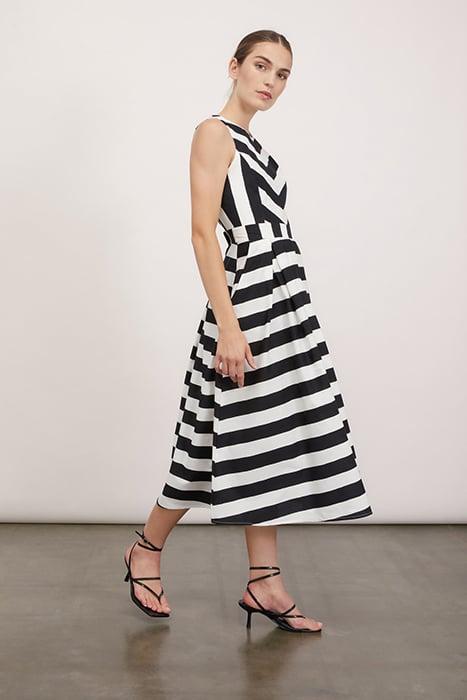 STRIPED MIDI DRESS BLACK