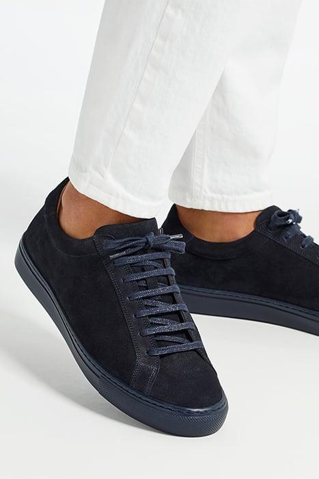 These Smart Navy Sneakers Are Crafted From Soft Italian Suede With A Full Light Brown Leather Lining And A Navy Rubber Chevron Sole.