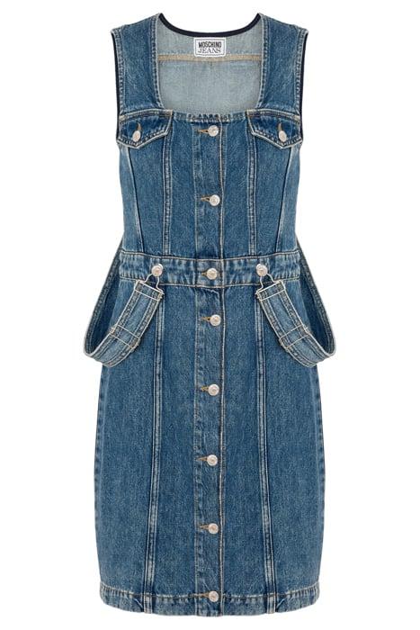 Cotton Denim Dress With Decorative Straps Detail And Metal Buttons.