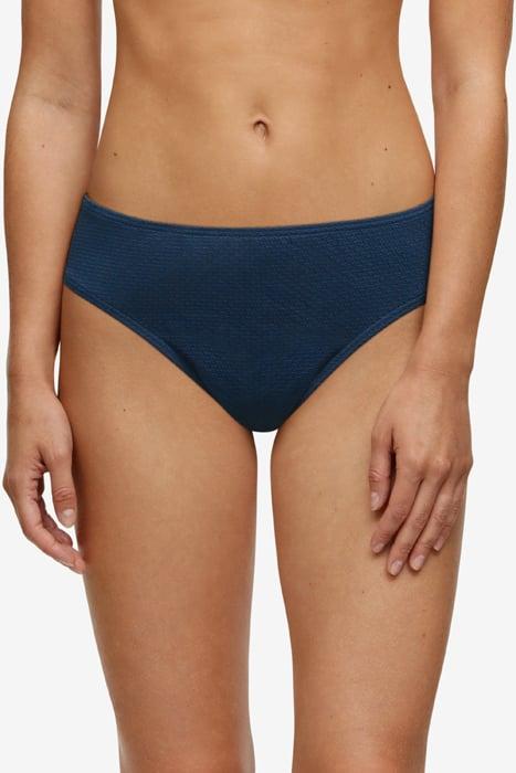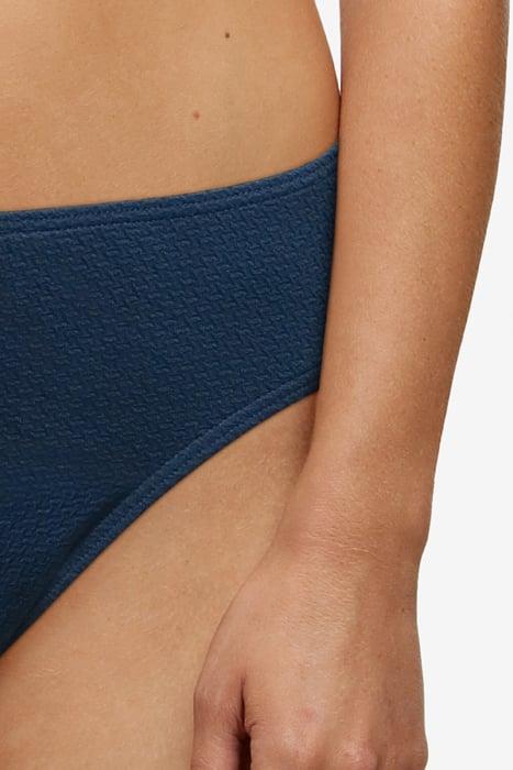 Beautiful Midwaist Bikini Slip In A Petrol Color With A Texture Fabric.