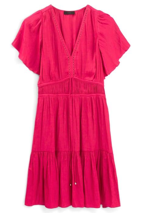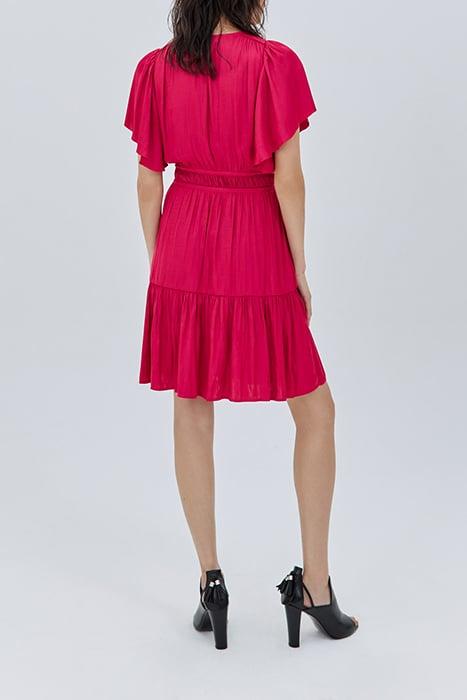 This Midi Dress Will Fit Perfectly Into Your Summer Wardrobe In A Tangy Fuchsia Colour With A Ruffled Fit For A Figure That Looks Gorgeous.