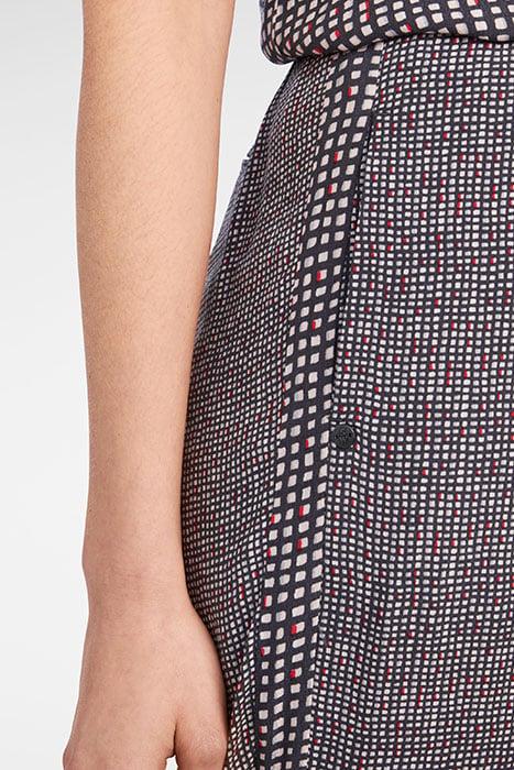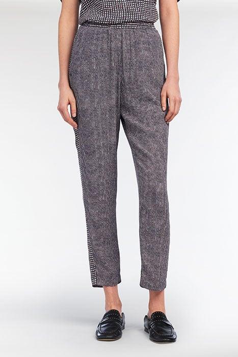 Het model Sienna van Sandwich is een comfortabele broek met een normale taille en taps toelopende pijpen. De elastische tailleband zorgt voor nog meer comfort. Als detaillering hebben we aan de zijkant van de broek een inzet aangebracht met een contrasterende print en dit geeft de broek een verrassende uitstraling. Combineer het met de bijpassende top uit de collectie.