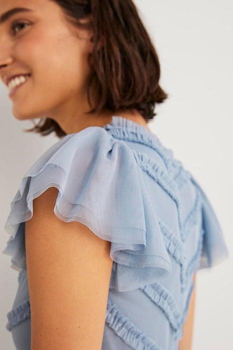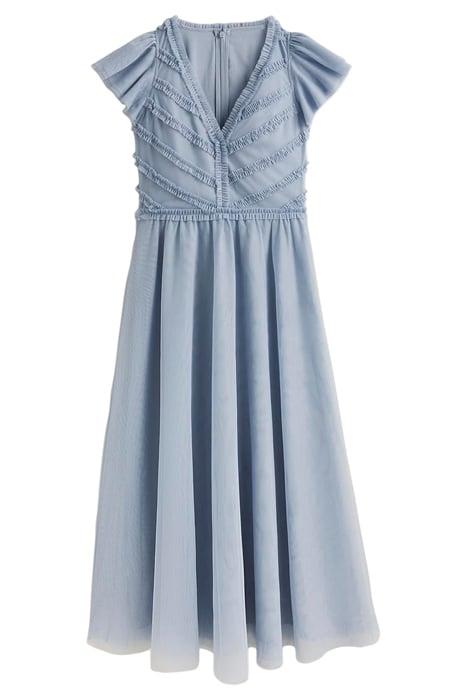 TULLE V-NECK MAXI PARTY DRESS BLU
