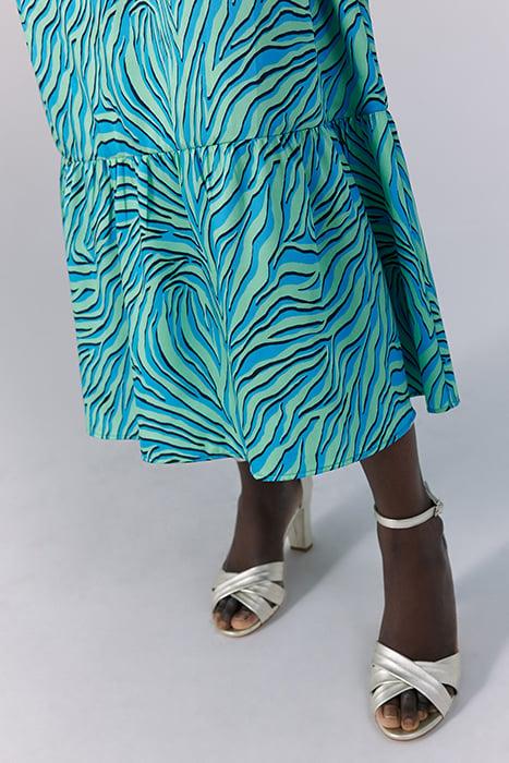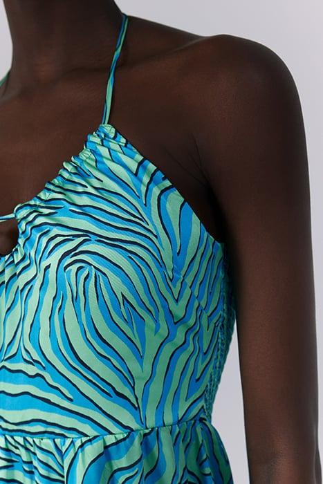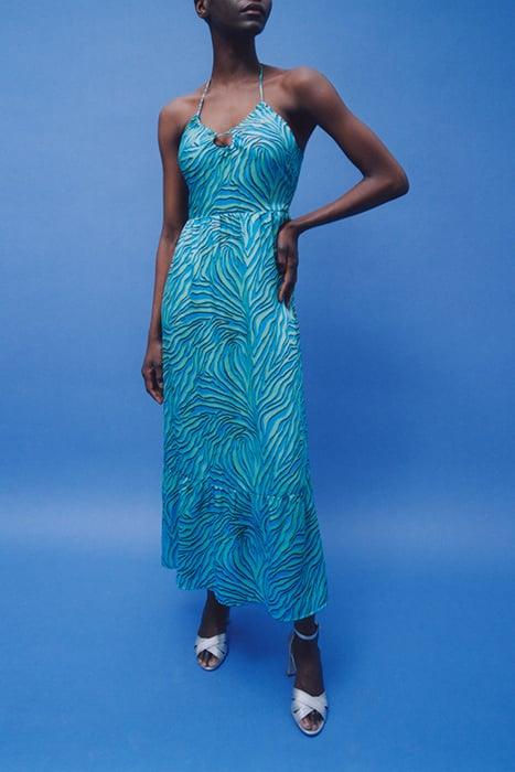 TURQUOISE ZEBRA PRINT BACKLESS LONG DRESS