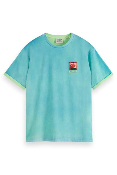 TWO COLOUR SPRAYED T-SHIRT WASHED NEON BLUE