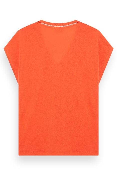 V-NECK LADDER DETAIL LOOSE FIT T-SHIRT CANDY RED