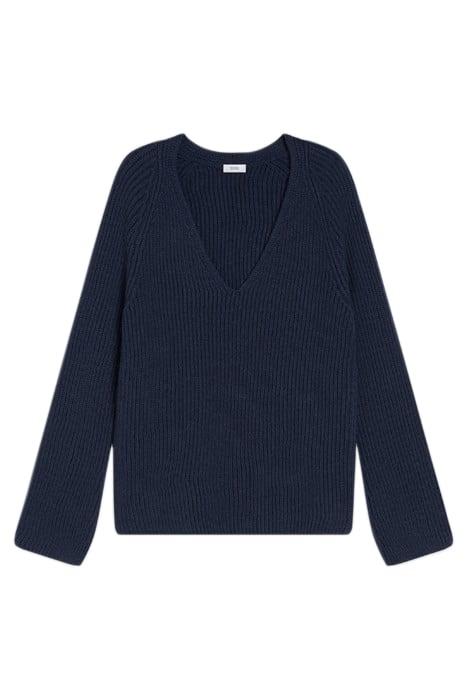 V NECK LONG SLEEVE SPACE BLUE by Closed is an embodiment of minimalistic charm. Imbued with Closed’s renowned dedication to quality and sustainability, this piece blends functionality with style, making it an essential addition to your wardrobe.