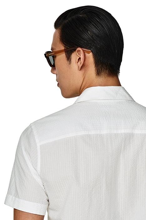 WHITE CAMP COLLAR SLIM FIT SHIRT