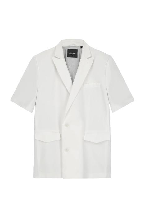 A double breasted blazer, this Blazer feels like a piece of modern tailoring with its single row of buttons and short sleeves. Woven from a comfortable fabric with a custom monogrammed lining, it blends modern comfort with traditional details like flap pockets. Features a woven label at the rear of the collar adding to the fresh-out-the-tailors aesthetic.