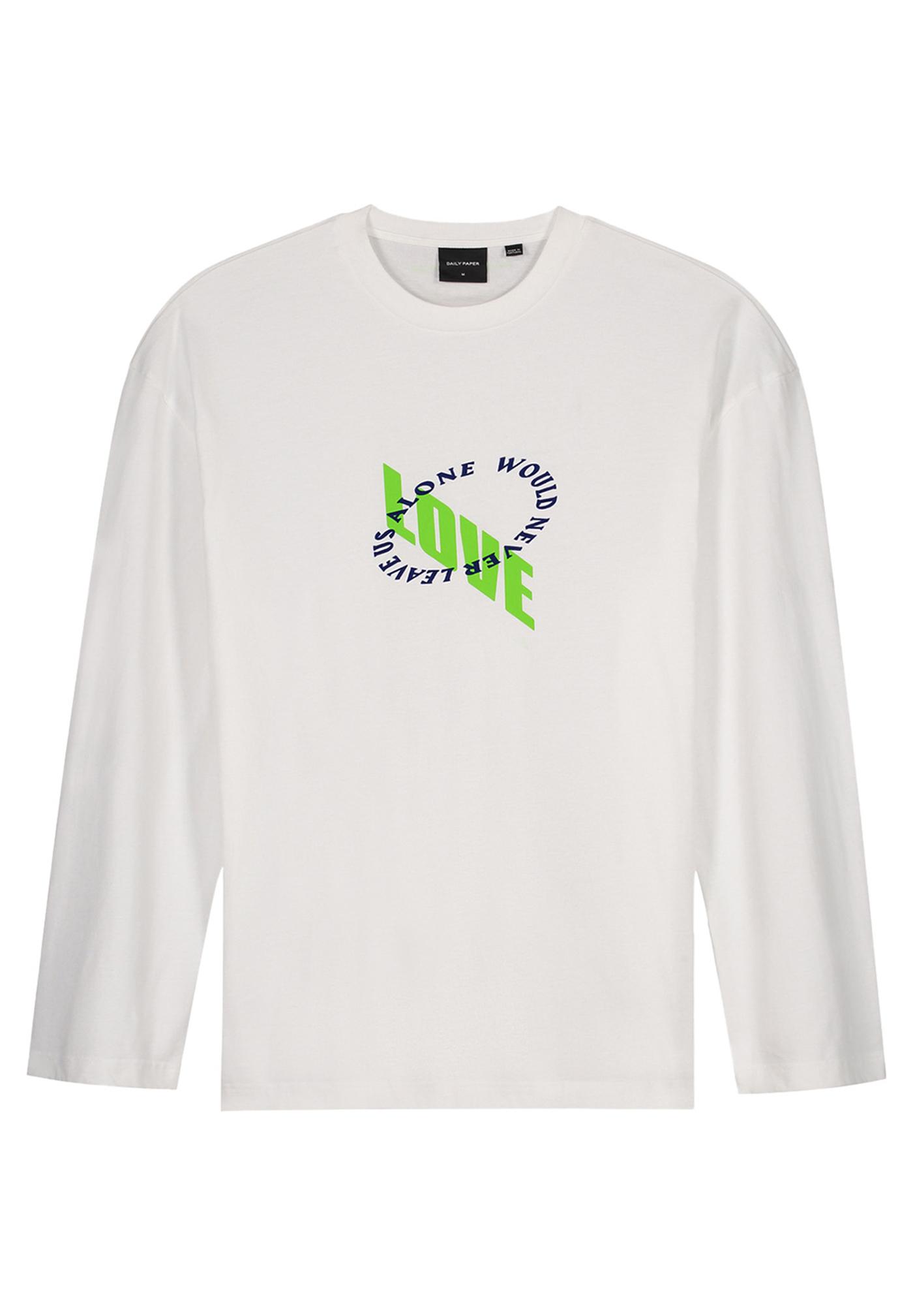 Our perfected rendition of the basic long sleeve t-shirt in a classic all-white colourway. Crafted from super soft cotton jersey with a loose ribbed collar and an oversized fit, this tee has a high-quality look and feel without compromising on breathability and comfort. Features a textured flock print 'Love' graphic on the front with 'Daily Paper' logo at the rear for a nostalgic retro aesthetic.