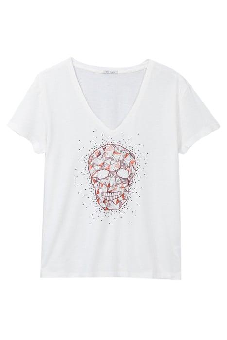 WHITE T-SHIRT WITH STUDS AND SKULL IMAGE