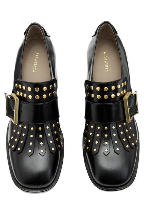Zia Stud Loafer Black Shine. Perfect for layering or standing out on its own, this Black nan is the definition of understated luxury. Timeless yet contemporary, this nan ensures you always step out with confidence.