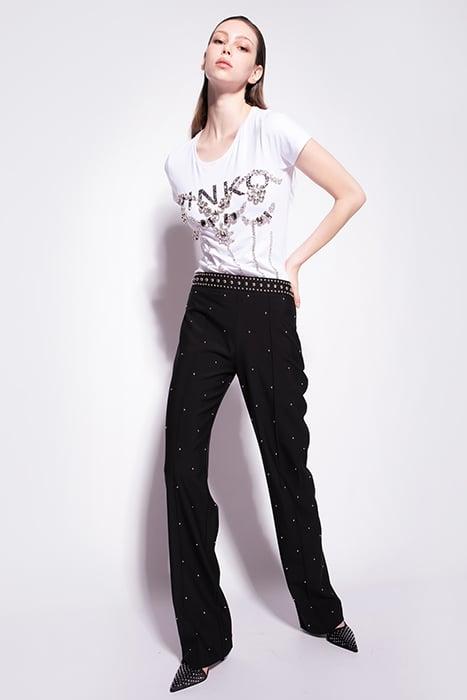 Short-Sleeved Cotton Jersey T-Shirt With Printed Pinko Logo Embellished With Chaton-Jewel Embroidery At The Front.
